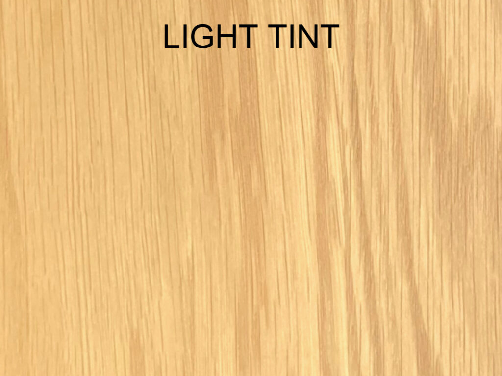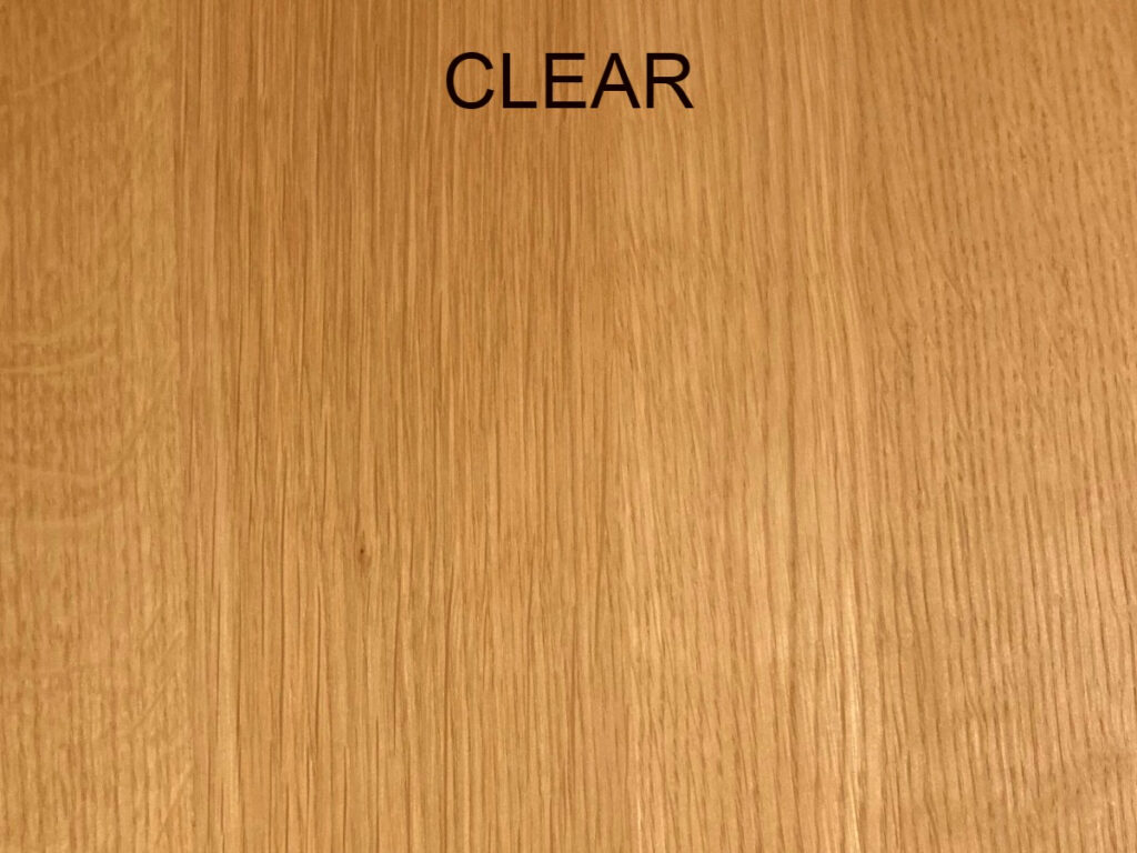 As well as clear, we offer three other finishes as standard, which we call warm tint, dark tint and light tint. The warm finish creates a light orange/brown tone, the dark tone is a deep brown shade and light tint is the closest to unfinished (bare) oak.