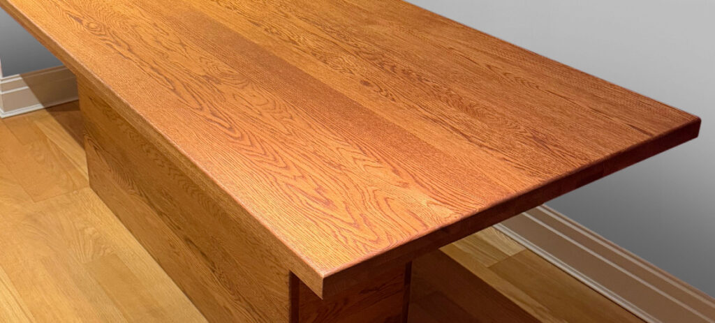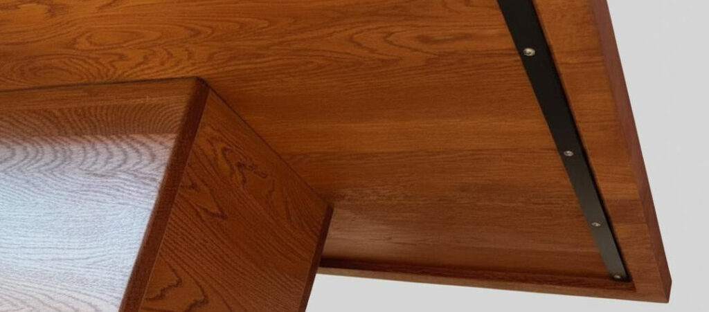 Bespoke thicknesses (e.g. 27mm, 35mm and so on) are often available as custom orders. In these cases, the additional thickness can be achieved by adding a ‘false edge’ around the entire perimeter of the top underside. This techique gives the desired appearance while keeping down the cost of material used – as well as reducing the weight of the table top.